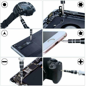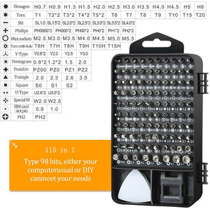 115-in-1 Precision Screwdriver Set has more tools and comes with all the necessary tools for a wide variety of jobs. Precision screwdriver professional set perfect for repairing smartphones, laptops, tablets, mobile devices, and other precision items like wristwatches and eyeglasses. Lightweight and compact design 115 screwdrivers set for DIY. These durable screwdriver bits are made of CRV(Chrome-vanadium) steel, strong hardness can reach HRC52 56, durable, and precise that guaranteeing for long time use. This multi-functional screwdriver set 115 is a perfect repair tool for iPad, iPhones, Samsung, Tablets, Laptops, PC, Smartphones, Watches, Glasses, Camera PS4/Xbox controllers, and other electronic devices. Please feel free to order it.