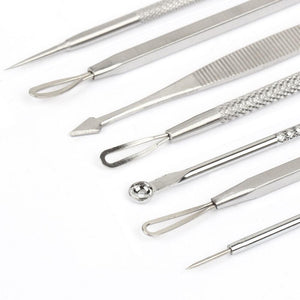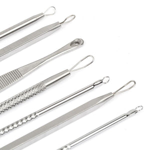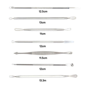 • 7 pcs Professional High-Quality Pushers and Pimple Extractors for Removing Blackheads, Whiteheads, Pimples, and Blemishes.