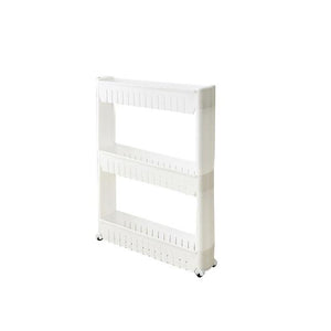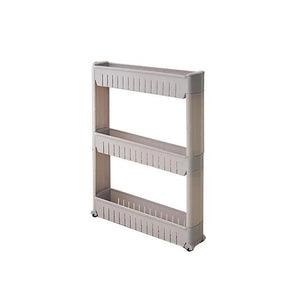 Utilize space in your home with this Storage Shelf Plastic Rack. Designed in vertical way to save space at home and fit any narrow spaces. It has four wheels attached to pull the rack easily in and out. Suitable for canned goods, spices bottles, cleaning supplies, etc. If you have a little space in your house, this storage shelf plastic rack organizer is what you need to organize household supplies as well as easy to find them.